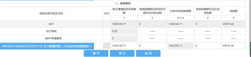 老师,请问一下。第四季度报税时销售额超出了45万,申报表里12栏填写了数据提交后,减免税明细表免税项目里有 数据,是不是直接就可以提交了,我把表发给你,麻烦帮忙看一下,是不是正确的。是不是也不会缴税。