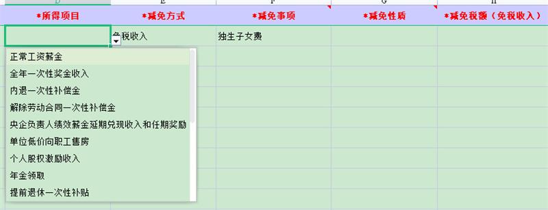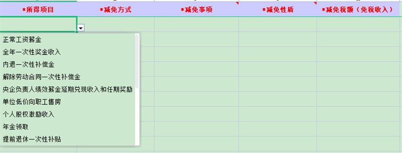 如果是减免事项附表,那所得项目选哪个?
