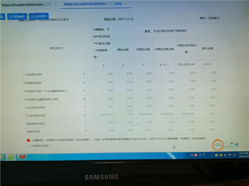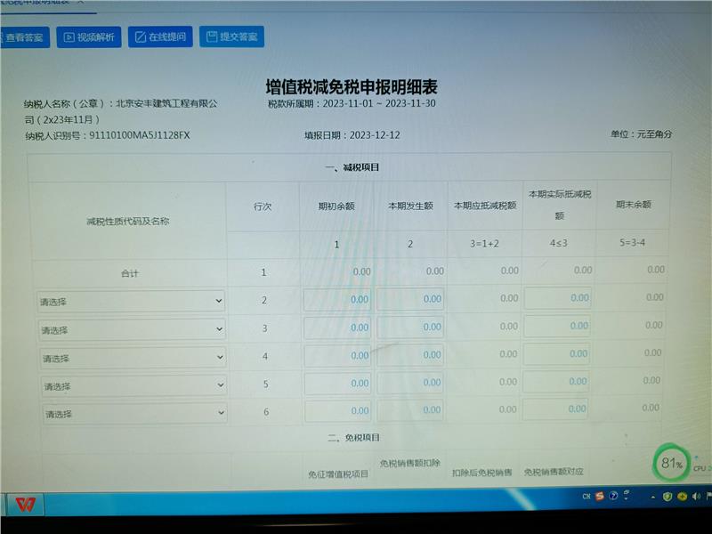 老师,您好,我也不清楚是不是差额征收,就是按照给的资料填了一下表,条件里给了一行简易计税扣除2912.62,答案还没有这个数字,应该是答案漏了,主表肯定是扣除了2912.62,附表三第几行,谢谢