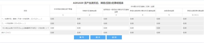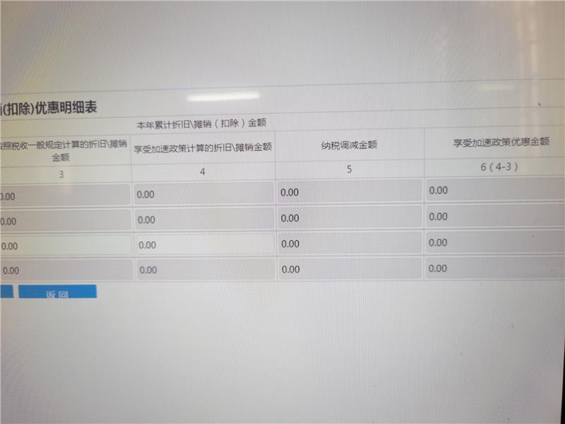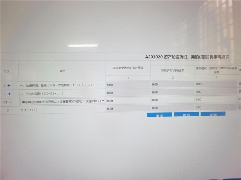 如果享受一次性扣除的话,第一列填写原值,第2列填写账上的折旧金额,第三列填写全年的账上应折旧金额,第四列填写原值,在本年一次性扣除的话,以后年度需要将当年的折旧费用填写调增的,第四列税收折旧金额就是0的。