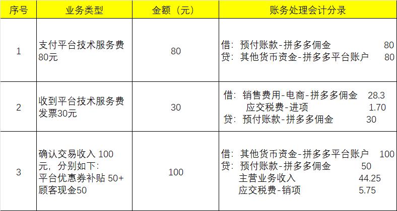 3、确认交易收入100元(平台优惠券补贴50+顾客现金50):