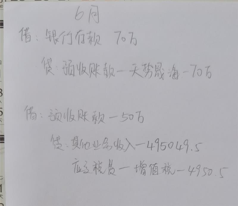 借:银行存款70万 贷:预收账款20 万 营业收入50/(1+税率) 应交税费-应交增值税-销项50/(1+税率)*税率。