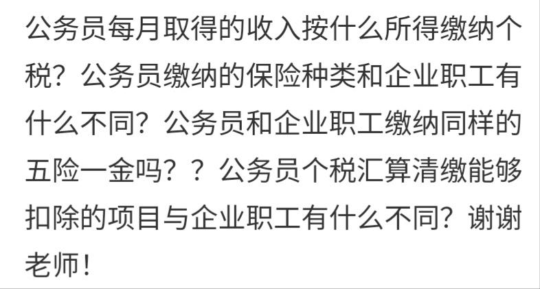 公务员每月从机关单位获得的收入也是按工资薪金所得缴纳个税吗?公务员个税汇算清缴能够扣除的专项扣除和专项附加扣除扣除与企业职工是一样的吗?