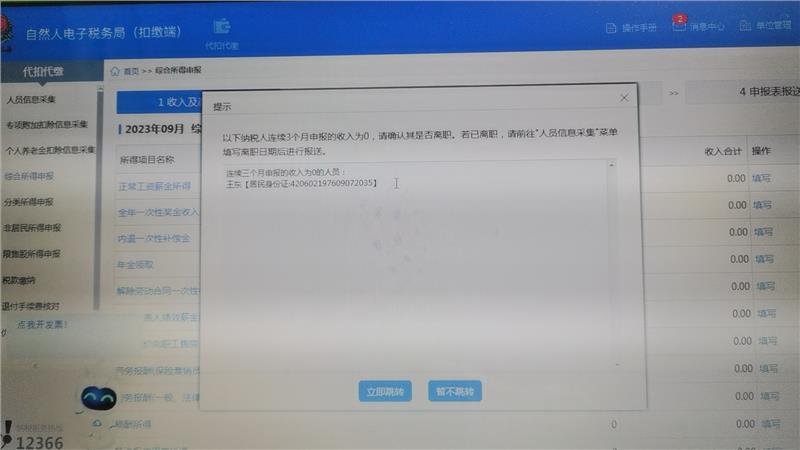 但每个月按时0申报,现在个税0申报,出现这样的问题,可以0申报吗