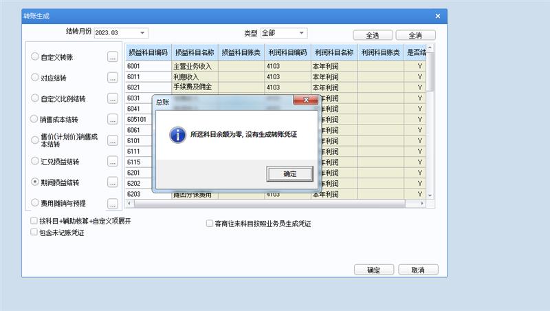 他这个下面那张图片不是说所选科目余额为零没有生成转账凭证